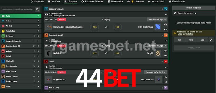 O 44bet oferece uma grande seleção de opções de apostas em e-sports com probabilidades competitivas